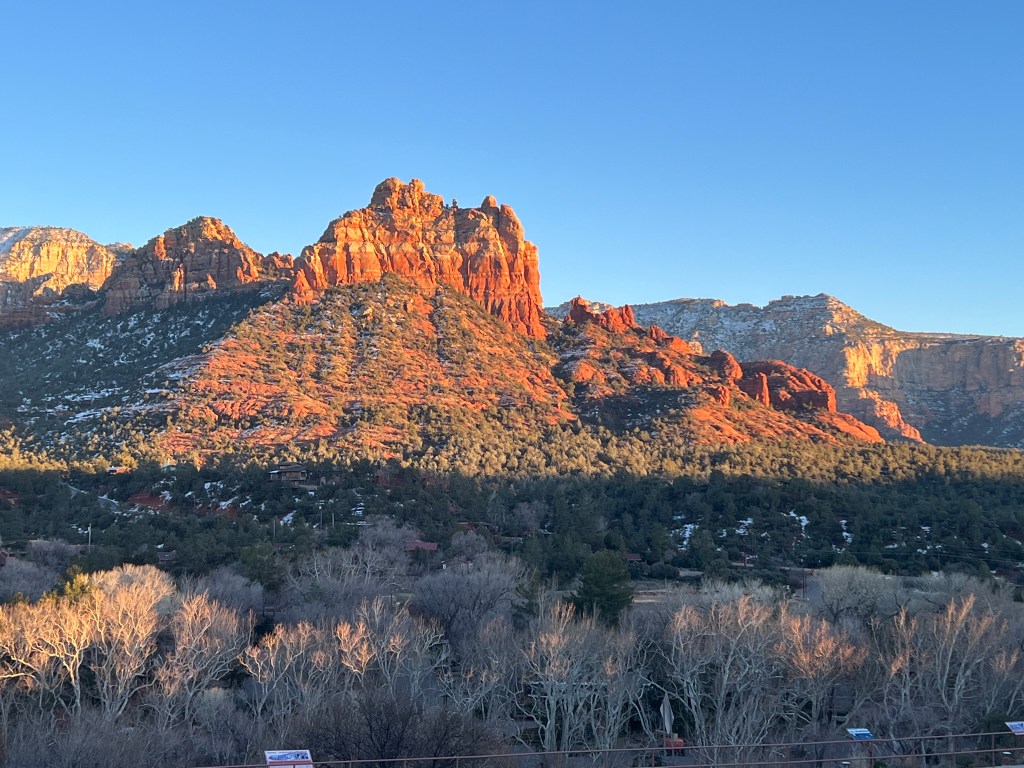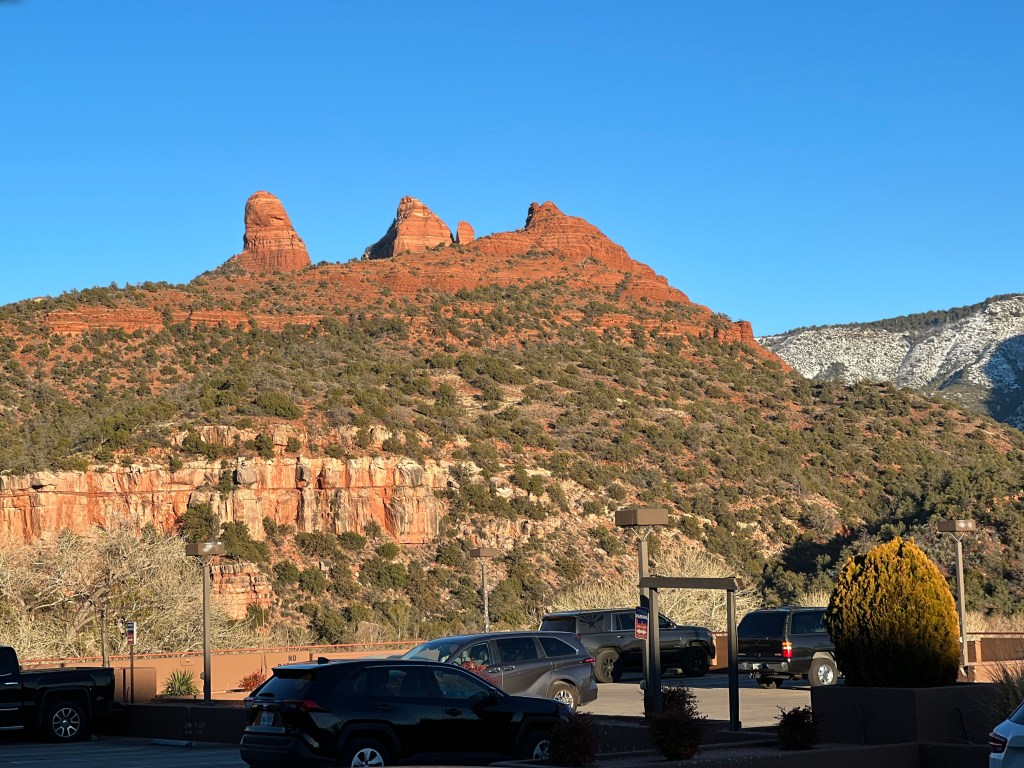 Mountains are often named for what the beholder sees. That strategy can also cause a mountain to have multiple names or descriptions. In Sedona some of the mountains are named things like coffee pot rock, Snoopy Rock, Lizard rock, Elephant Thunder mountain. The views of the mountains from various sides show different views.